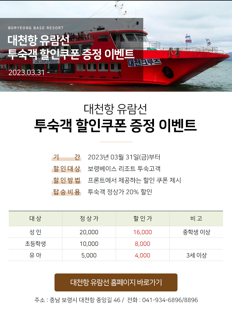 대천항 유람선 투숙객 할인쿠폰 증정 이벤트